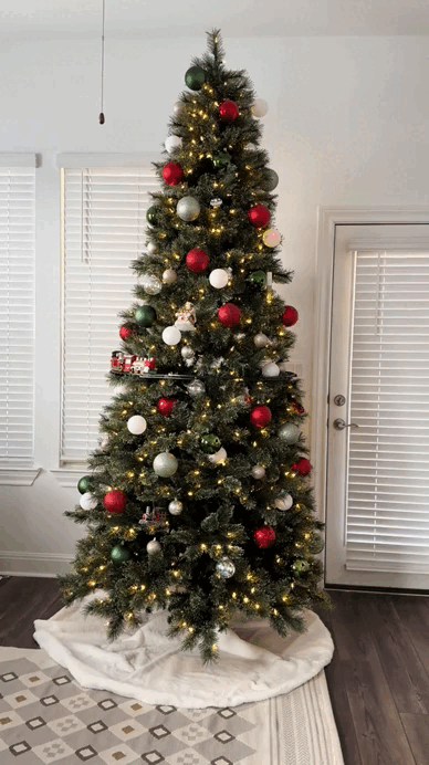 Einfach zu montieren, legt sich dieser kleine Zug sanft über oder um den Baum und umarmt die Zweige wie ein festliches Band. Seine Räder drehen sich leicht, während die Lichter zwischen den Dekorationen tanzen und der Umriss des Weihnachtsmanns am Steuer erscheint – bereit, seine Geschenke zu verteilen. Eine kleine Geste, die jeden Baum in eine lebendige Szene verwandelt – eine bewegte Krippe, die die Blicke fesselt und das Herz erwärmt.